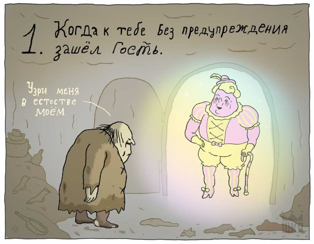 — Разработок и обсуждений с собой требует, да. Комиксы спонтанно придумываю. Случается, например, какая-то ситуация со мной, и я думаю: «О, такой сюжетик можно сделать». Записываю общий смысл себе в список идей и потом через 3 года, когда у меня руки доходят до этого сюжетика, начинаю делать и сижу, корпею над ним две недели. Ну или я смотрю на этот сюжетик и думаю: «Пфф, ну и чё это ваще». И не делаю его. В общем с момента озарения до момента, когда я реально сяду делать, должно пройти время, сюжет должен как бы настояться, чтоб доказать своё право на жизнь.