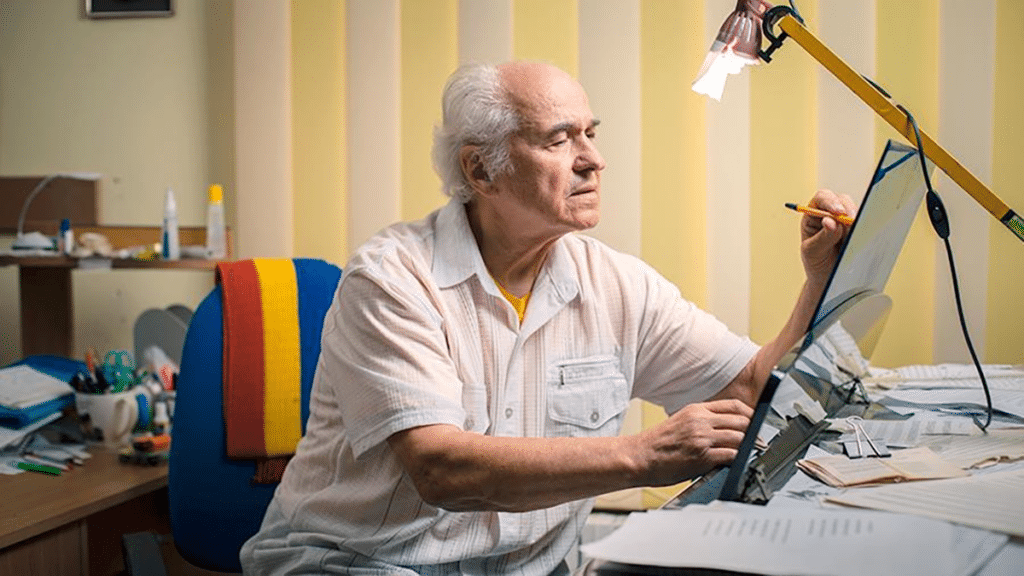 Композитор говорит о том, что является счастливым человеком. У него есть возможность и силы заниматься любимым делом на протяжении многих десятилетий.