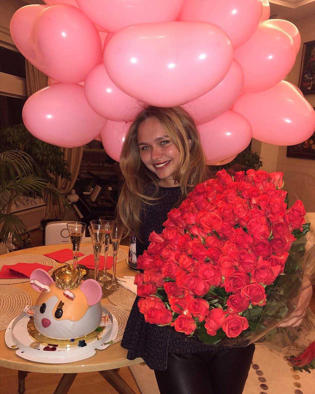 Утром 13 февраля именинница принимала поздравления от родителей, а после отправилась праздновать в ресторан. Для торжественного события девушка выбрала изумрудное платье с изящным бантом.