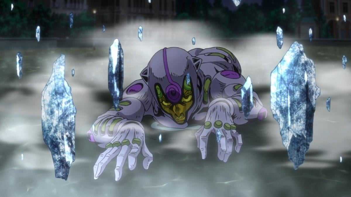 Its power is simple: it freezes anything. It’s a well-known fact that the power of ice is one of the most powerful ones that anime and comic book characters possess. It can solidify even gas by turning it to ice, and can also use ice as a very thick and tough armor. It can also create an ice path for it to skate on. This stand gave Giorno a very hard time.