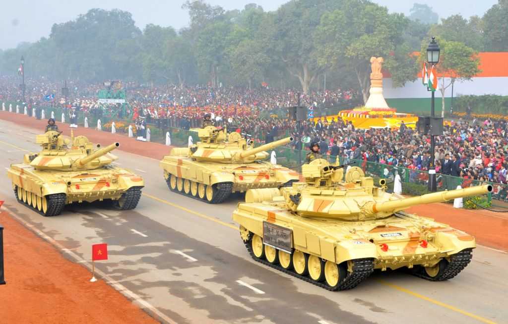 Т-90 проезжает через Раджпатх во время парада в честь 65-го Дня Республики, Индия, Нью-Дели